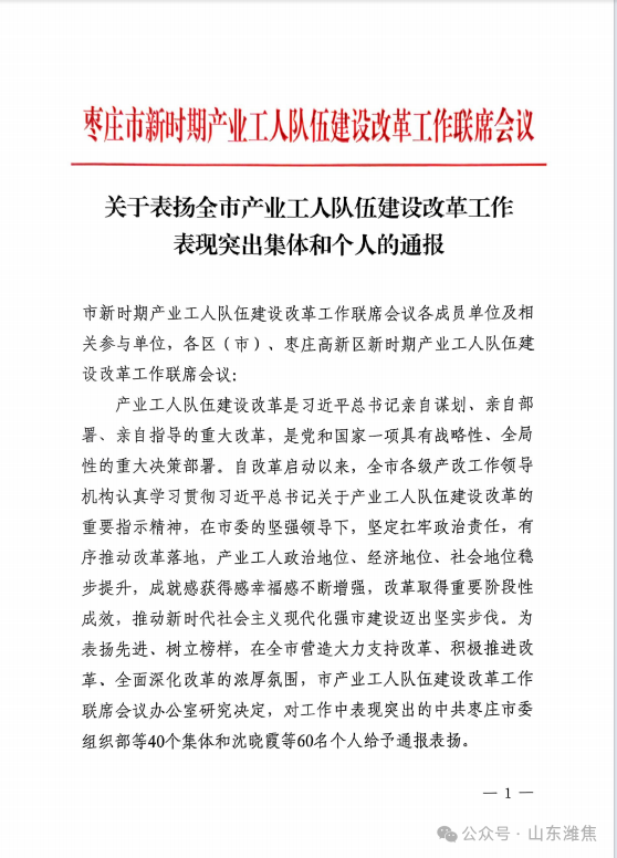 11月27日,棗莊市新時(shí)期產(chǎn)業(yè)工人隊(duì)伍建設(shè)改革工作聯(lián)席會(huì)議公布表彰名單,薛城能源公司榮獲“棗莊市產(chǎn)業(yè)工人隊(duì)伍建設(shè)改革工作表現(xiàn)突出集體”稱號(hào)。